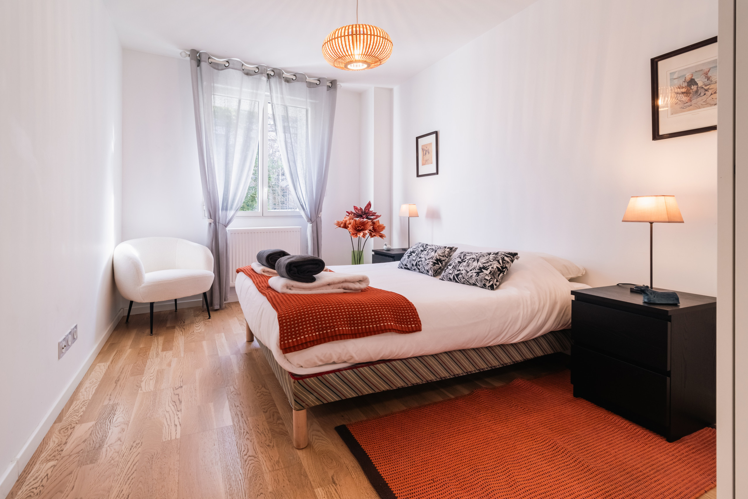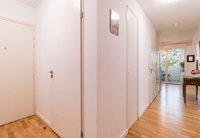 Elle dispose de 5 m² de terrasse, lave-linge, fer à repasser, accès internet (wifi), sèche-cheveux, chauffage central, garage même bâtiment, 2 ventilateurs, 1 Télévision.