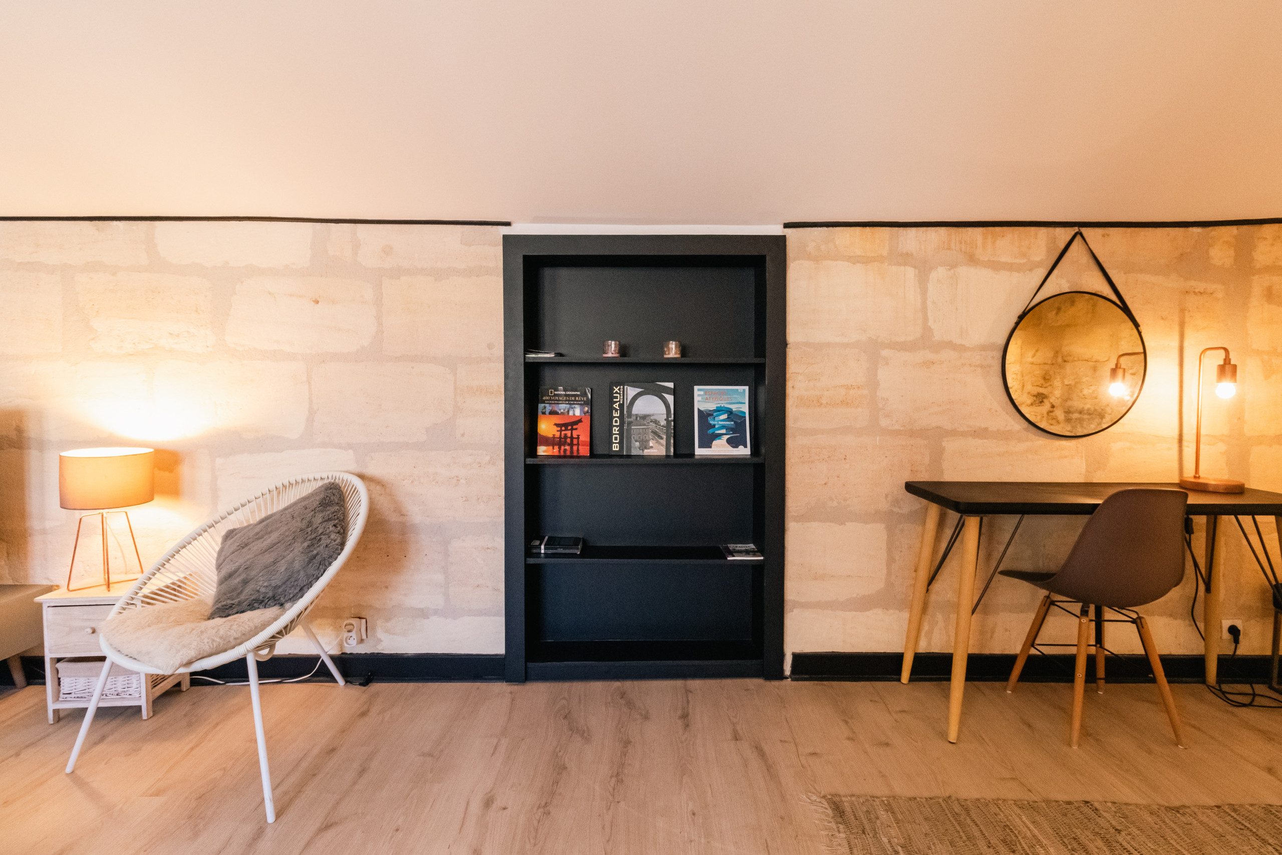 Installez-vous pour quelques jours dans cet appartement cosy, situé à quelques pas de la place Camille-Jullian, au cœur du quartier Saint-Pierre dans le centre-ville de Bordeaux. Plongez-vous dans la vie culturelle dynamique de ce quartier.